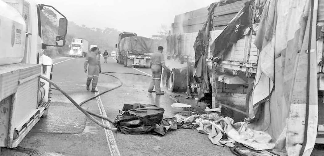 Por incendio de balatas se le quema el remolque a unidad pesada, en Ozuluama.