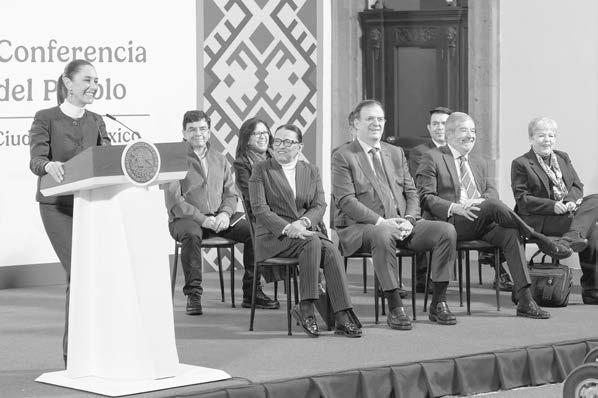 Acompañaron a la Presidenta de México, la secretaria de Gobernación, Rosa Icela Rodríguez; el secretario de Economía, Marcelo Ebrard Casaubon; el secretario de Relaciones Exteriores, Juan Ramón de la Fuente; la secretaria de Medio Ambiente y Recursos Naturales, Alicia Bárcena; el coordinador de Asesores de la Presidencia de la República, Jesús Ramírez Cuevas; la coordinadora general de Asuntos Intergubernamentales y Participación Social de la Presidencia de la República, Leticia Ramírez Amaya y el jefe de Unidad para América del Norte, Roberto Velasco Álvarez.