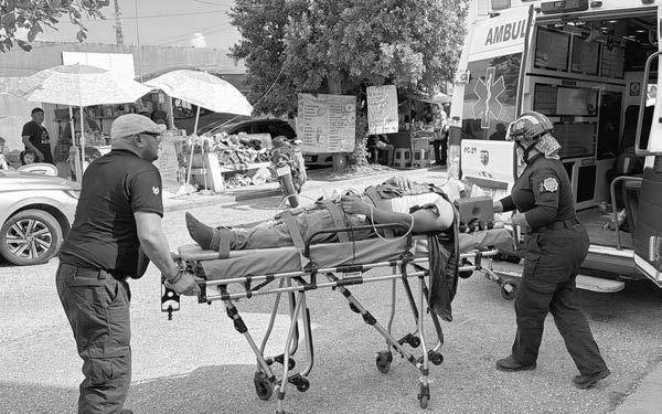 Paramédicos de Protección Civil y Bomberos acudieron al sitio para brindarle atención prehospitalaria; posteriormente, debido al desmayo presentado, fue trasladada al Hospital IMSS Bienestar, donde ingresó al área de urgencias para su evaluación médica.