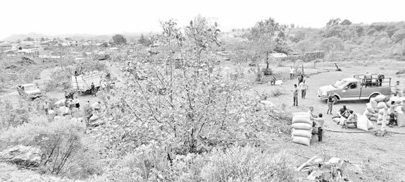 Pobladores llegaron con vehículos particulares y camionetas para cargar los bultos de grano que transportaba el camión, pese a la presencia de