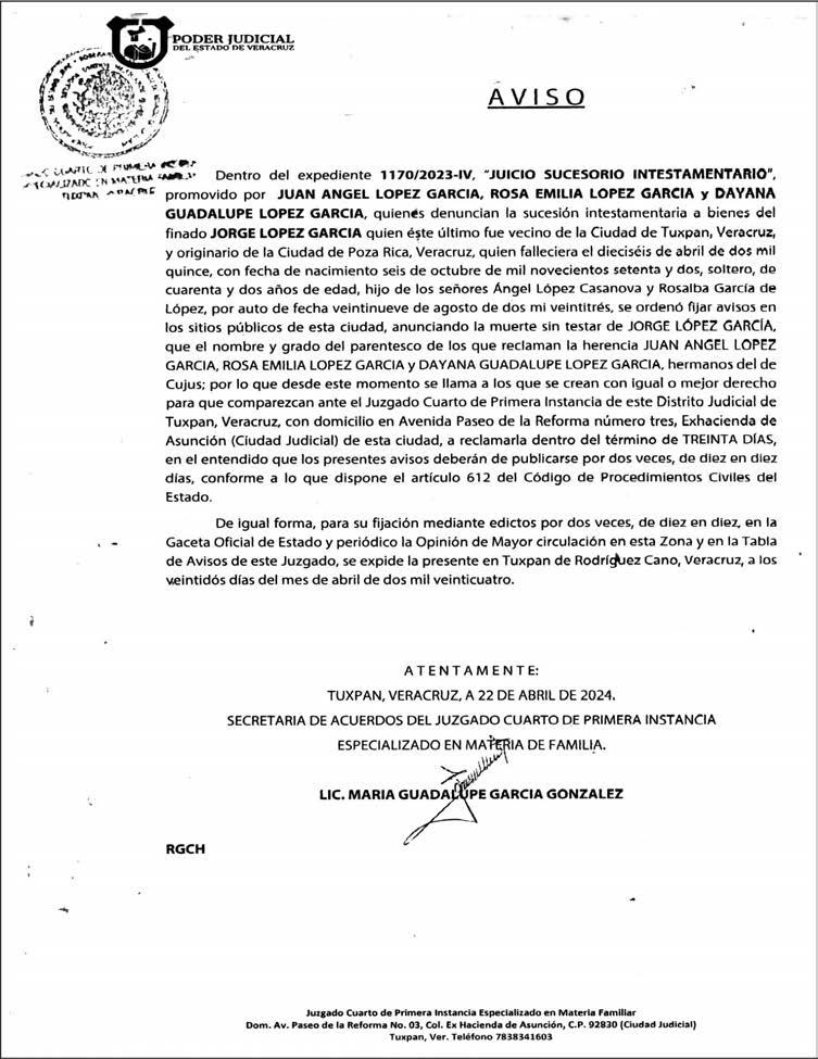 Las autoridades médicas dieron parte a la Fiscalía Regional de Justicia con sede en Cardel, en torno a este fallecimiento. Con el apoyo de un perito de Servicios Periciales, se realizaron las diligencias correspondientes y se ordenó que el cadáver fuera llevado al Servicio de Medicina Forense en Boca del Río para la práctica de la autopsia. Cabe destacar que se integró la Carpeta de Investigación 194/2024, sobré este presunto suicidio.