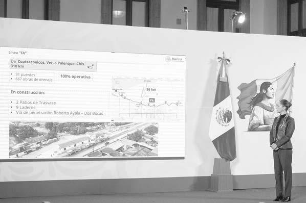 las obras de esta vía tienen un avance general de 58.5 por ciento y cuya fecha de término está estimada para el 4to trimestre del 2025. Además informó que estará también conectada hacia Guatemala, a través del puente Internacional “Rodolfo Robles”. Mientras que el viaducto Huixtla de esta misma línea lleva 72.8 por ciento de avance y contará con un parque lineal de 3 km.