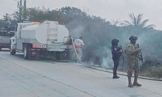 Durante las labores, personal del Sector Naval de Tuxpan y de la Fuerza Naval del Golfo estableció seguridad perimetral en el área afectada. Además, apoyó con el suministro de aproximadamente 25 mil litros de agua mediante vehículos tipo pipa.