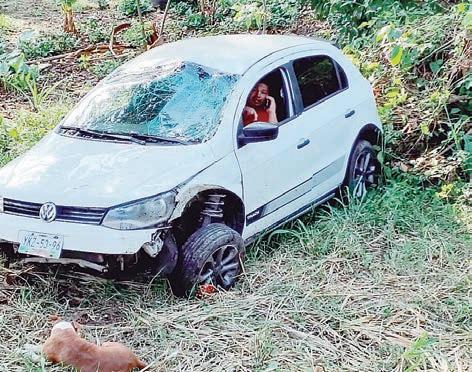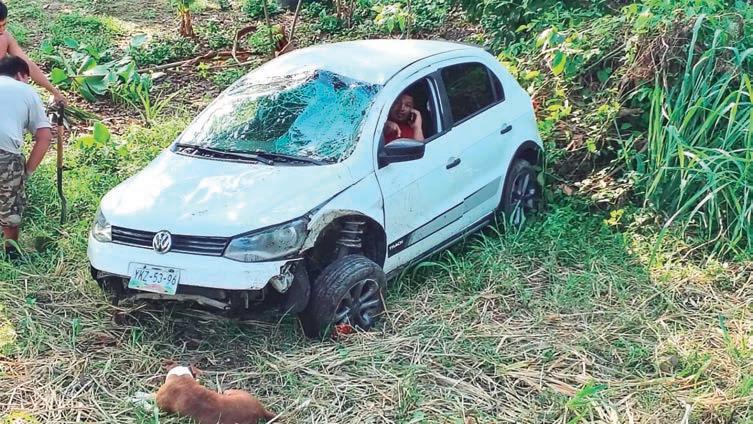 Por manejar a exceso de velocidad, chofer de automóvil terminó fuera de la cinta asfáltica, en Tlapacoyan. PASE A LA 21