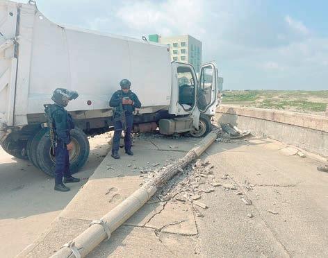 En Coatzacoalcos, se queda sin frenos unidad de limpia pública y choca con poste. PASE A LA 22