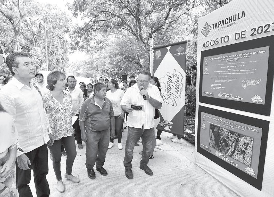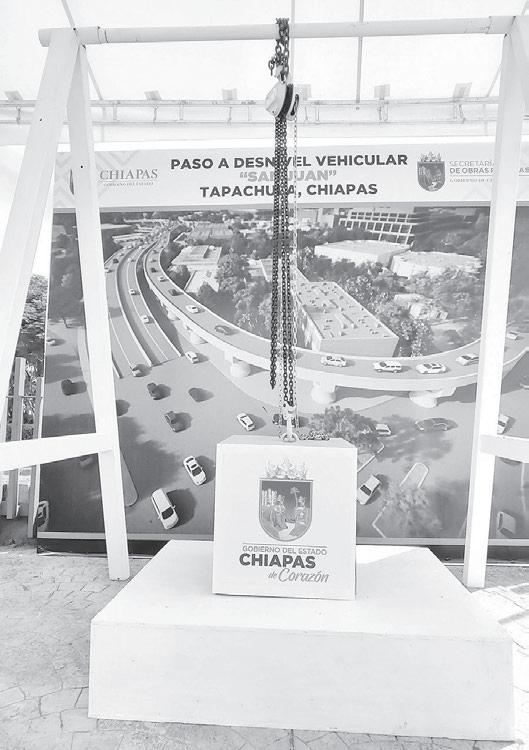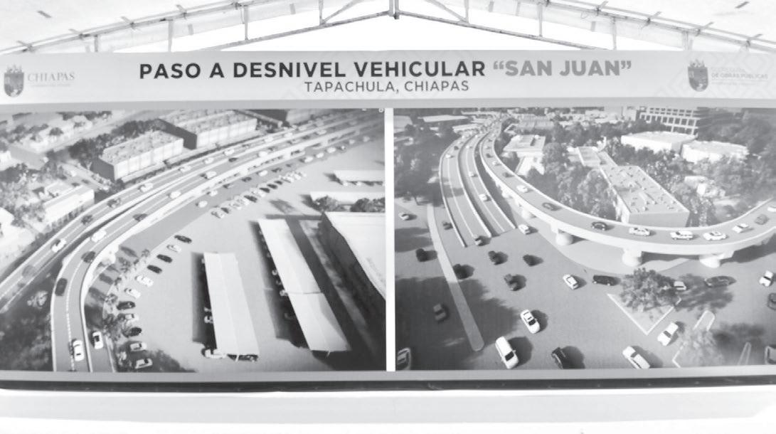 En su gira de trabajo por Tapachula, el gobernador Rutilio Escandón Cadenas colocó la primera piedra del Paso a Desnivel Vehicular San Juan, el cual favorecerá la movilidad tanto de automovilistas como de peatones, y mejorará la imagen urbana, la seguridad y el desarrollo de este municipio.