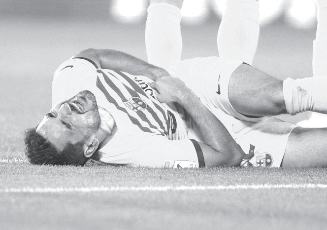Transcurría el minuto 26 de un intenso partido entre los ‘azulones’ y los catalanes en el Coliseum Alfonso Pérez, cuando el defensor