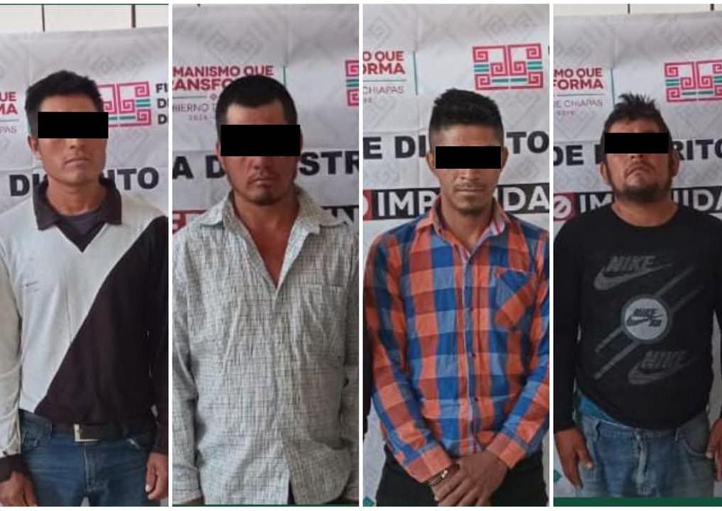 La Fiscalía General del Estado y la Secretaría de Seguridad del Pueblo cumplimentaron la orden de aprehensión en contra de Carlos “N”, José “N”, Juan “N” y Jorge “N, como presuntos responsables del delito relacionado con ganado (calidad de comercio), cometido en agravio de Héctor “N”, por hechos ocurridos en el municipio de Ocosingo.