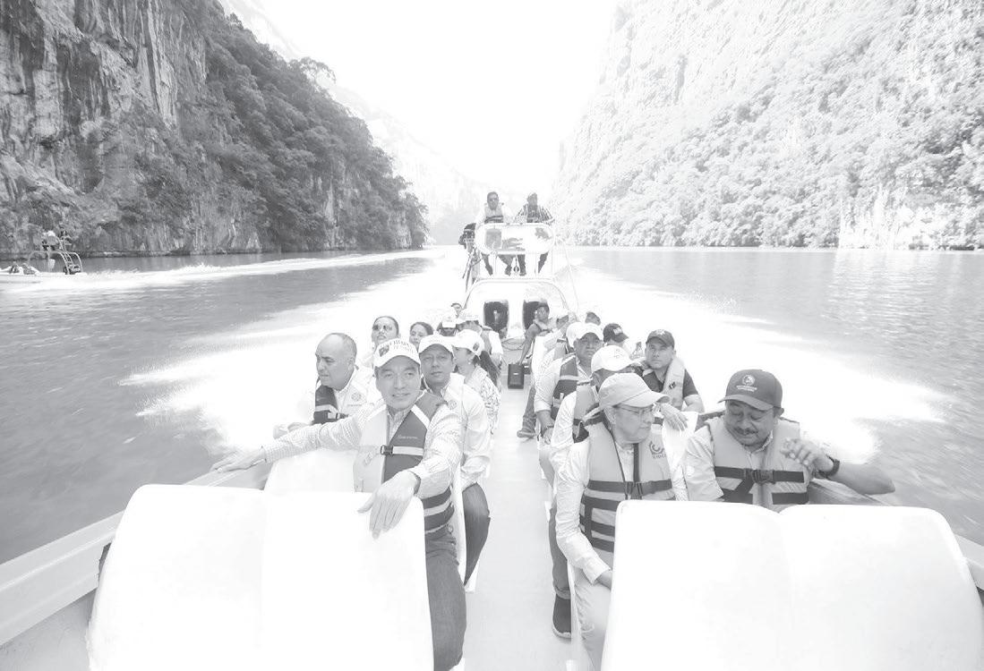 El gobernador Rutilio Escandón Cadenas supervisó la limpieza del Cañón del Sumidero, a través de un recorrido en lancha por el río Grijalva, donde pudo constatar los excelentes resultados que han tenido estas acciones que iniciaron con la decisión de su gobierno de mantener esta belleza natural en óptimas condiciones.