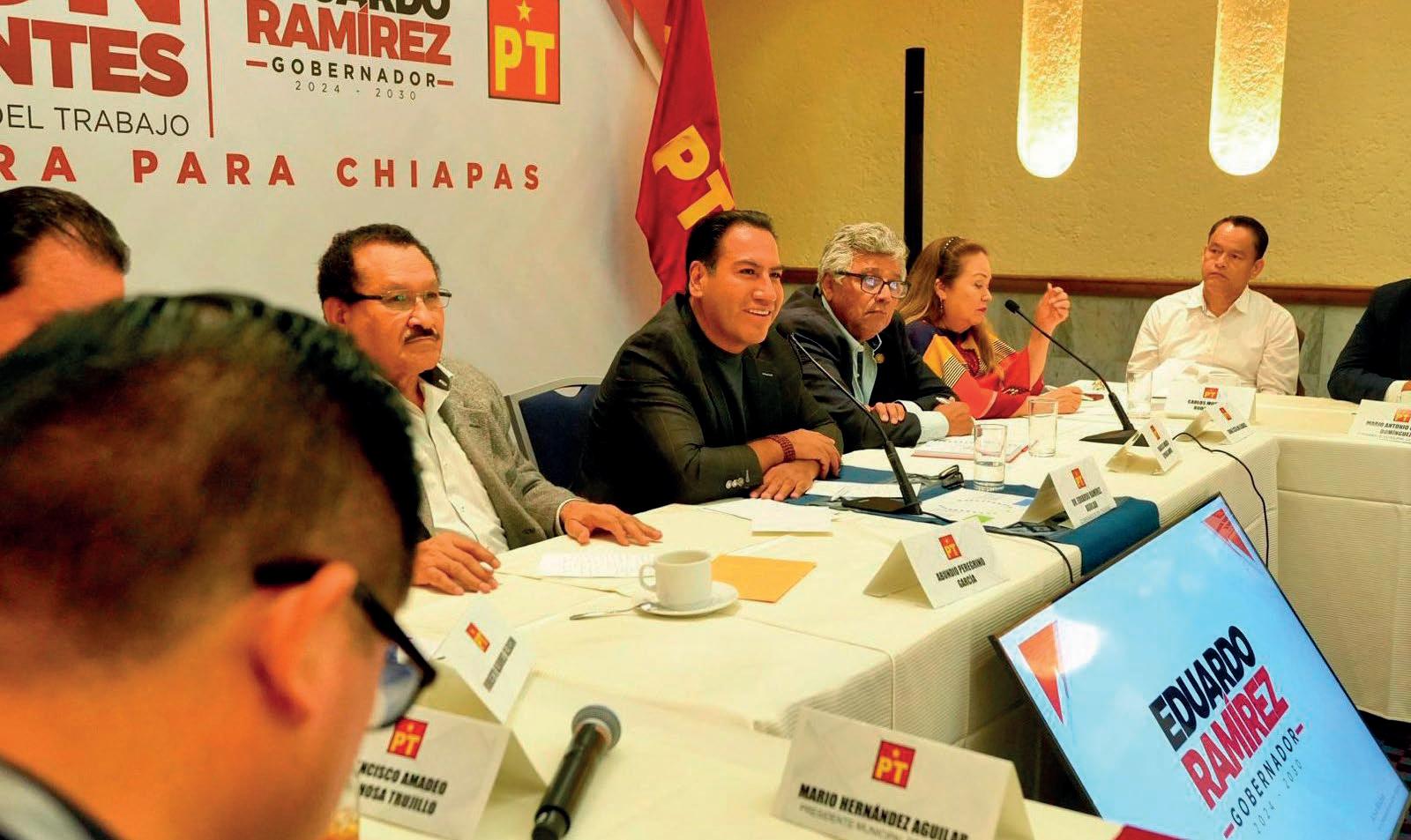 Con la finalidad de coordinar esfuerzos que beneficien a cada municipio, el gobernador electo de Chiapas, Eduardo Ramírez Aguilar, sostuvo un encuentro de trabajo con presidentes municipales electos del Partido del Trabajo (PT).