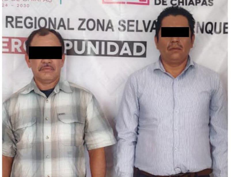 Inmediata Pakal (FRIP) y la Policía Estatal Preventiva (PEP) en coordinación con la Agencia de Investigación e Inteligencia Ministerial de la Fiscalía General del Estado (FGE) detuvieron a dos presuntos integrantes de una célula delictiva en Frontera Comalapa.
