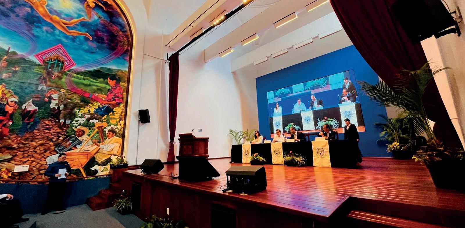 Desde el Auditorio Don Enrique Robles Domínguez, el magistrado presidente Ramos Pérez, acompañado del asesor legal de la Oficina Internacional para el Desarrollo de Sistemas de Procuración de Justicia del Departamento de Justicia de los EE.UU. (OPDAT), por sus siglas