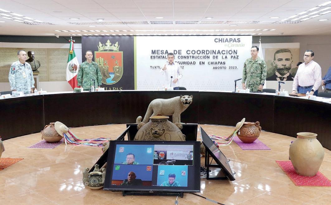 En el marco de la Mesa de Coordinación para la Construcción de la Paz y la Seguridad, el gobernador Rutilio Escandón Cadenas destacó que en Chiapas las autoridades de los tres niveles de gobierno suman esfuerzos y hacen causa común con el objetivo de prevenir la violencia y garantizar mayor bienestar, seguridad y respeto a los derechos humanos y colectivos de las niñas, adolescentes y mujeres de la entidad.