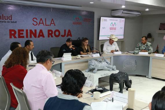 y pequeñas especies, además de la distribución de medicamentos preventivos y curativos de manera gratuita, en coordinación con instancias federales y organismos sanitarios, entre ellos el Servicio Nacional de Sanidad, Inocuidad y Calidad Agroalimentaria y el Departamento de Agricultura de los Estados Unidos, con el objetivo de cumplir protocolos internacionales para la movilización de ganado dentro y fuera del país. En la reunión estuvieron presenteselcoroneldelaGuardiaNacional de Estado Mayor, Armín Lechuga Montiel; el director de Salud Pública, Orlando García Morales; la directora de Atención Médica, Adriana Gómez Bustamante; el director de Protección Contra Riesgos Sanitarios, Rodolfo Tovar Rodríguez; y el secretario técnico, Rafael Domínguez Cortés.
