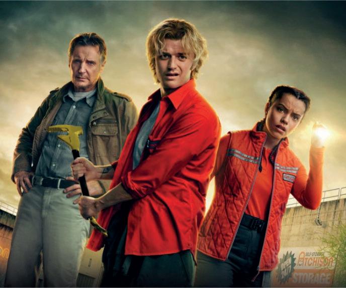 En Alerta extinción se ve cómo sus personajes, Travis Pastelito y Naomi Williams, terminan siendo “héroes accidentales” por el simple hecho de estar trabajando en las bodegas en renta de las cuales son empleados. Es ahí, en el fondo de la Tierra, en donde se encuentra encapsulado un hongo peligroso que causa estragos muy explosivos y ellos, con ayuda de un experto (Liam Neeson), tendrán que eliminar esa amenaza mundial.