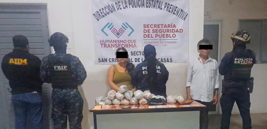 guraron entre sus pertenencias 48 dosis con las características de la droga conocida como cristal. Por estos hallazgos fueron detenidos y puestos a disposición de las autoridades correspondientes para determinar su situación jurídica. Con estas acciones la Secretaría de Seguridad del Pueblo refrenda el compromiso de continuar trabajando con operativos de seguridad para detener a presuntos integrantes de células delictivas en Chiapas y así garantizar la paz de las familias chiapanecas.