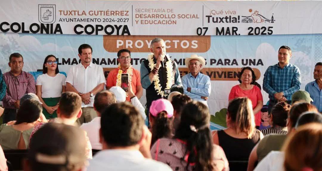 El presidente municipal de Tuxtla Gutiérrez, Ángel Torres, encabezó el seguimiento al proyecto “Almacenamiento Seguro”, el que benefició con tinacos a igual número de familias de la colonia Llano del Tigre, ejido Copoya, al sur oriente de la capital chiapaneca. Al explicar que el objetivo de este proyecto es mejorar las condiciones de vida de las familias tuxtlecas, siendo prioridad las que viven en condiciones de vulnerabilidad, el alcalde capitalino informó que se han beneficiado a habitantes de las colonias Nuevo Amanecer, Piedra Santa, 7 de Abril, Monte Cristo, Patria Nueva, entre muchas más.