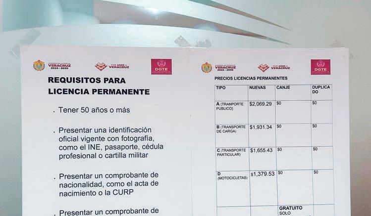 En este momento las tarifas vigentes de las licencias nuevas son: para tipo A de 2 mil 345 pesos, tipo B de 2 mil 207, tipo C es de mil 931 pesos, mientras que la D es de mil 380 pesos. El módulo se encuentra donde anteriormente estaban las oficinas de la Cámara Nacional de la Industria de la Transformación (Canacintra) de Coatzacoalcos.