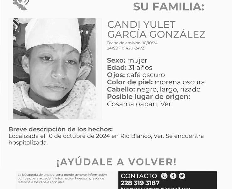 La Comisión Estatal de Búsqueda de Veracruz (CEB) emitió una ficha que es difundida a través de las redes sociales para localizar a los familiares de la chica y así ella pueda llegar a su domicilio.