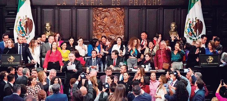 en la Cámara de Diputados al aprobar la reforma judicial pese a que se contaba con suspensiones provisionales que concedieron jueces federales para evitar la presentación, la discusión y votación del dictamen correspondiente.