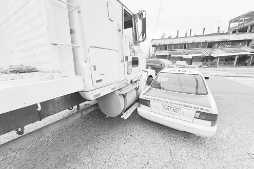 Tlapacoyan, pero el imprudente conductor del taxi rebasó de forma indebida por la derecha cortándole el paso al camión provocando el choque.
