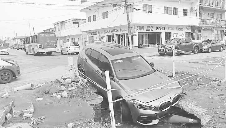 Una camioneta BMW cayó en un socavón de una obra de rehabilitación en la colonia Playa Sol de Coatzacoalcos.
