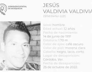 desaparición de Jesús Valdivia Valdivia, de 32 años de edad, con quien se perdió el contacto el pasado 25 de octubre de 2022