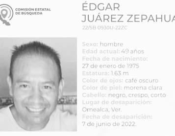de 49 años de edad, con quien se perdió el contacto el pasado 7 de junio de 2022 en Omealca, Veracruz.