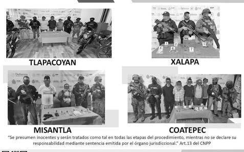 Por otra parte, en Misantla, fueron asegurados un arma de fuego tipo escuadra; cartuchos de diferentes calibres; una camioneta y sustancias prohibidas, y se realizó la detención de Uriel Vicente “N” y Lucero “N”. También, durante el operativo simultáneo, fueron detenidos en Perote, Joshua Alenxandro “N”, José Manuel “N”, Héctor de Jesús “N”, Ángel Fernando “N” y Jesús Alberto “N”, a quienes se les aseguraron chalecos balísticos y diversos envoltorios con sustancias ilícitas.