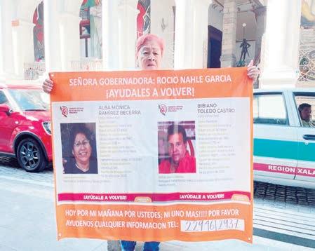 Trinidad Becerra Tiburcio y un familiar se manifestaron este jueves frente a palacio de gobierno para exigir a las autoridades que intervengan ante la Fiscalía General del Estado (FGE) debido a que transcurrió un mes desde que privaron de la libertad a su hija Alba Mónica Ramírez Becerra y su esposo Bibiano Toledo Castro, sin que se tengan avances en la Carpeta de Investigación.