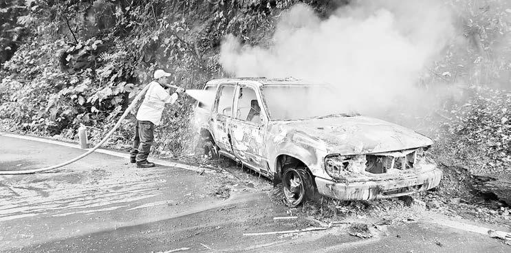 Fue por el lugar denominado Portezuelo sitio en dónde un carro compacto estaba en llamas y a pesar del esfuerzo del personal de protección civil, la unidad quedó completamente quemada.