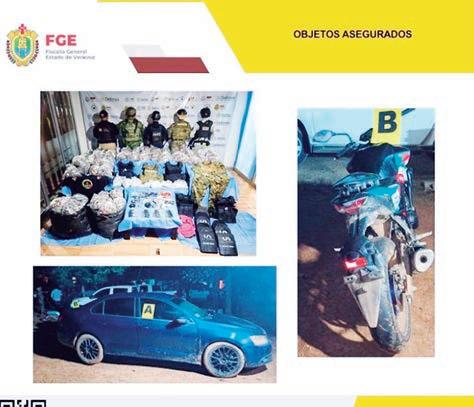 En Alvarado se aseguraron diversos vehículos, armas de fuego, casquillos balísticos, teléfonos celulares, identificación con nombre de un policía municipal, esposas, una pipa de cristal y tabletas electrónicas.