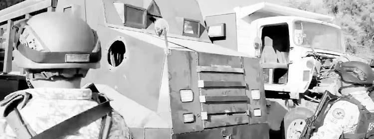 do de información de inteligencia, aseguró un arma larga, tres armas cortas, cinco chalecos balísticos, un vehículo blinda-