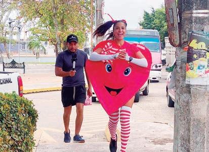 La corredora de ultra - distancia Miriam Orozco celebró el día del amor y la amistad vestida de corazón y entregando paletas.