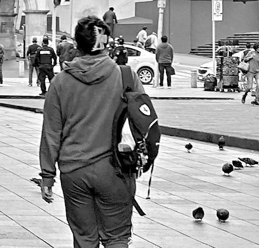 La mujer recargó su bastón en la banca y su mirada se perdió entre la gente citadina que camina con rapidez, y en un momento se paró para extender su lona y mostrar que busca a su hija y su yerno.