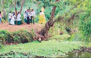 Habitantes realizan procesión y misa a la orilla del río para pedir lluvia