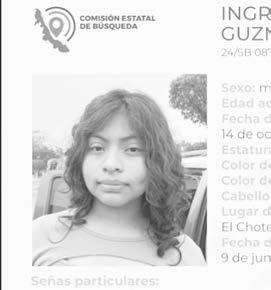 La ficha 24/SB 0875U-24ZN reporta la desaparición de Ingrid Paula Guzmán Pérez, de 17 años de edad, con quien se perdió contacto el pasado 9 de junio de 2024 en El Chote, Papantla, Veracruz.