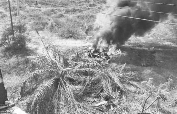 Luego de caer aproximadamente de 12 metros de altura fueron a pegar con una palmera y un montículo de tierra que aparentemente amortiguaron el golpe, pero la unidad comenzó a incendiarse.