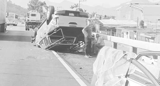 Daños materiales y cierre parcial de la circulación vehicular de la autopista 150D Orizaba-Córdoba, fue el saldo que dejó el choque por alcance y volcadura de un vehículo y una camioneta particular a la altura del puente vehicular que cruza la zona de los Tianguis del municipio