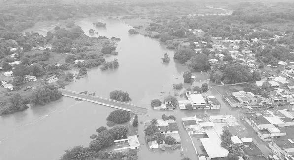 Familias resultaron gravemente afectados tras el desbordamiento del río e inundación de sus hogares, las calles quedaron intransitables, además otro de los problemas son las afectaciones en la red eléctrica y telefónica, además que están en penumbras.