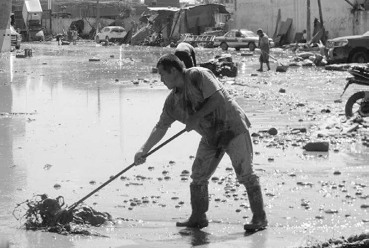 Elementos del Ejército Mexicano Aplican el plan DN-III-E y realizan la limpieza de las zonas afectadas donde el olor putrefacto es intenso por la gran cantidad de animales muertos que resultaron por el paso del agua.