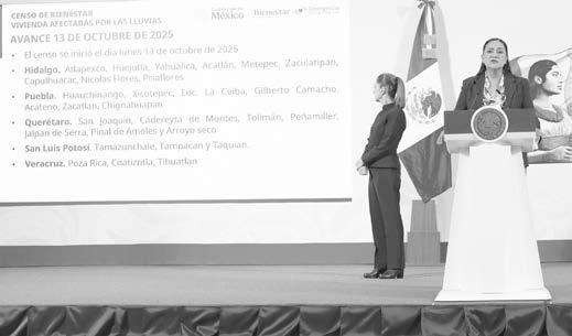 La secretaria del Bienestar, Ariadna Montiel Reyes, informó que se han censado 4 mil 178 viviendas en 30 comunidades de los cinco estados afectados. Además, anunció que en coordinación con la Secretaría de Trabajo y Previsión Social (STPS), se abrieron 5 mil espacios para que se incorporen a las tareas de limpieza beneficiarios del programa Jóvenes Construyendo el Futuro.