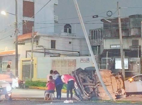 Un automóvil de modelo atrasado terminó volcado la tarde-noche de este martes sobre la avenida Cuauhtémoc de la ciudad de Veracruz, resultando dos adultos