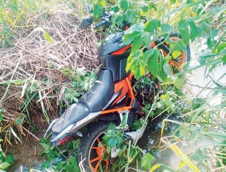 Un joven motociclista perdió el control presumiblemente por el exceso de velocidad en que circulaba y terminó dentro de un riachuelo.