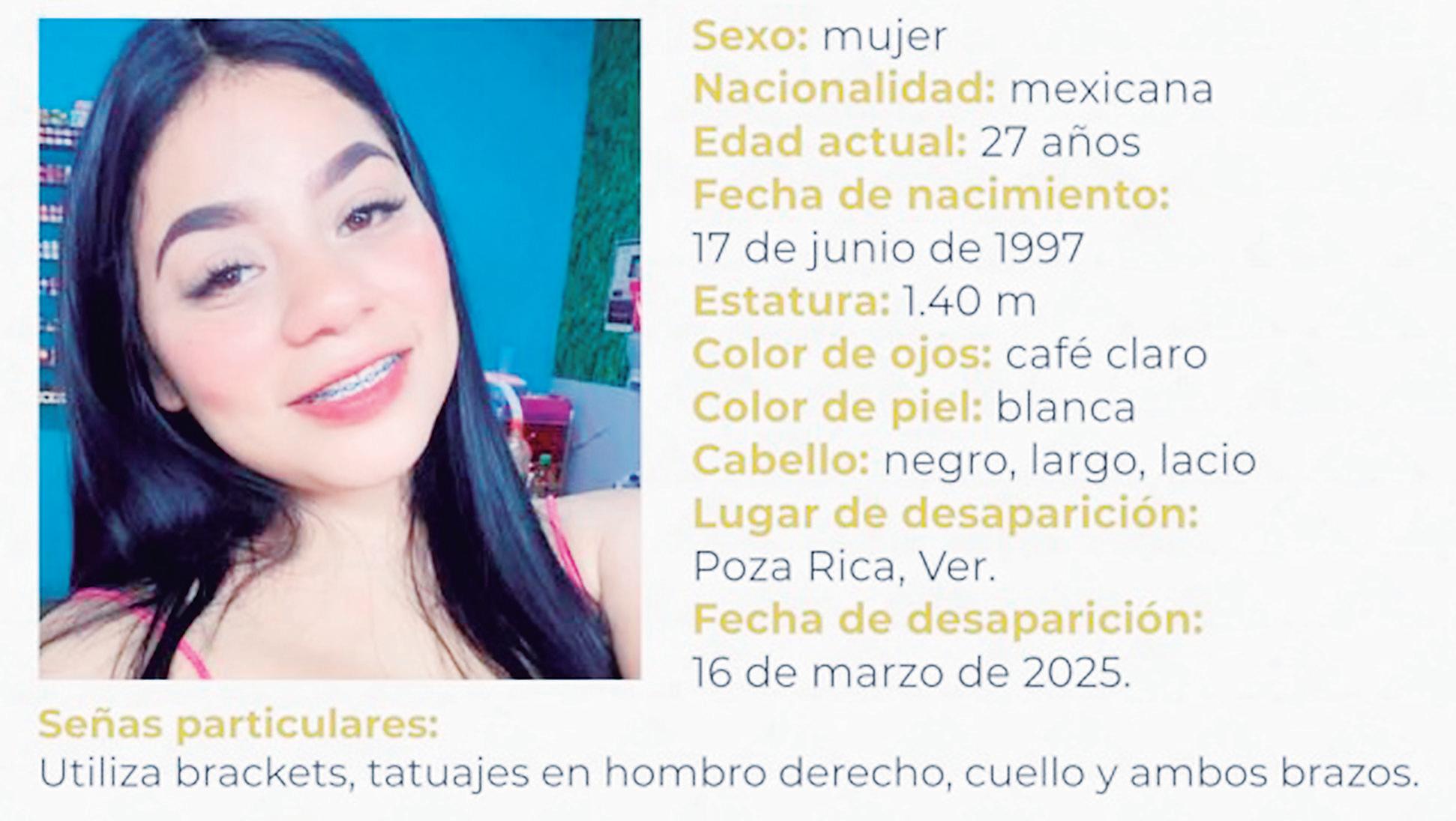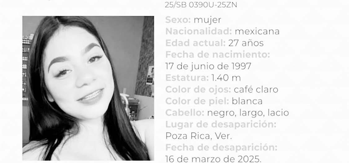 Si tienes información sobre su paradero, comunícate al 911 ó al 228 319 3187 de la Comisión Estatal de Búsqueda de Veracruz.