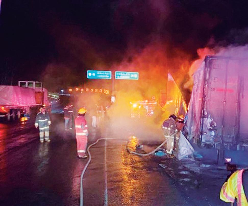 Alrededor de las 02:50 horas de este miércoles, automovilistas usuarios alertaron a las autoridades a través de la línea de emergencias sobre el incendio de un tráiler con caja seca en el kilómetro 263 a un costado del cuerpo de incorporación de La Laguna de Nogales. En cuestión de minutos, al sitio ubicado sobre el tramo carretero El Destacamento de La Guardia Nacional división Seguridad Regional- el Libramiento de Pemex Ciudad Mendoza, llegaron paramédicos de Capufe y Protección Civil Municipal, así como Bomberos y Paramédicos Regionales