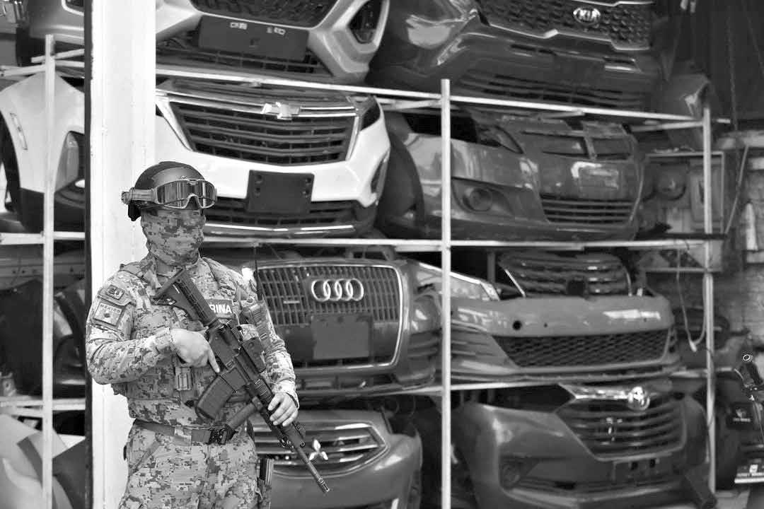 Resultados: Detención en flagrancia de 3 personas y el aseguramiento de vehículos, entre ellos automóviles, camionetas, autobuses, motocicletas, pipas, tractocamiones, cabinas, grúas, tractores y trailers. Así como hierba verde seca con características similares a las de la marihuana, una sustancia cristalina color blanco, pasaportes e identificaciones, pipas de cristal, cámaras de videovigilancia, un triturador de plástico con hierba verde seca en su interior, un artículo para fumar de material de cristal, una báscula gramera y un dron con control y estuche, una tabla de castigo y diversas autopartes, un arma de fuego larga, un cargador de arma de fuego, cartuchos balísticos, un telescopio, una caja contadora de billetes, unos binoculares, una fornitura, libretas con anotaciones diversas referentes a presuntas actividades ilícitas y un marco de motocicleta sin llantas ni motor.