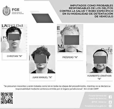 La Fiscalía Regional Cosamaloapan realizó imputación en contra de Juan Manel “N”, Christian “N”, Humberto Jonathan “N” y Próspero “N” como probables responsable de los delitos contra la salud y robo específico en su modalidad de detentación de vehículo