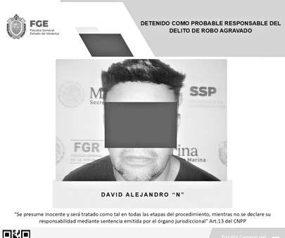 La Fiscalía General del Estado informa que, elementos de la Policía Ministerial en colaboración con policías de investigación de la Fiscalía General de Justicia de la Ciudad de México, cumplimentaron en aquella ciudad, orden de aprehensión en contra de David Alejandro “N” presunto alto generador de violencia posiblemente relacionado con otros robos a casa habitación en esta entidad y la CDMX, como probable responsable del delito de robo agravado. Hechos suscitados el 16 de marzo del año en curso, en el residencial Monte Magno de esta ciudad, cuando presuntamente sustrajo del domicilio de las víctimas identificadas con las iniciales