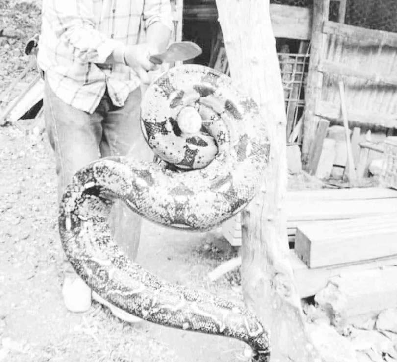La serpiente medía aproximadamente dos metros de largo, quien, al parecer, llevaba varios días en esa zona, pues se había comido cerca de 12 gallinas, por lo que, para la familia fue una pérdida en su economía, pues se quedaron sin su sustento.